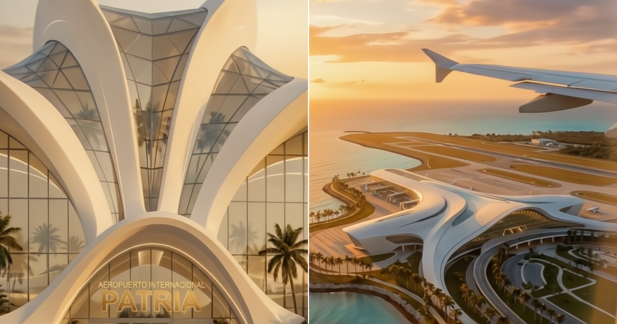 Das Design, das sich schnell in den sozialen Medien viral verbreitet hat, zeigt einen futuristischen Flughafen am Meer, mit Flügeln, die sich zum Horizont öffnen, als würde das Gebäude selbst in eine neue Ära für Kuba abheben.
