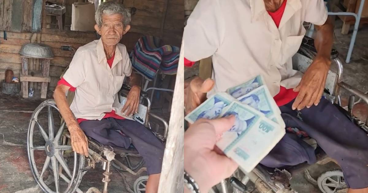 Ein älterer Herr, der allein in der Gemeinde Limpio Chiquito im Landkreis Cacocum, Provinz Holguín, lebt, erhielt Lebensmittel, Spenden und finanzielle Unterstützung dank einer Initiative des solidarischen Projekts Huellas, inmitten der prekären Bedingungen, unter denen viele Rentner auf der Insel überleben.